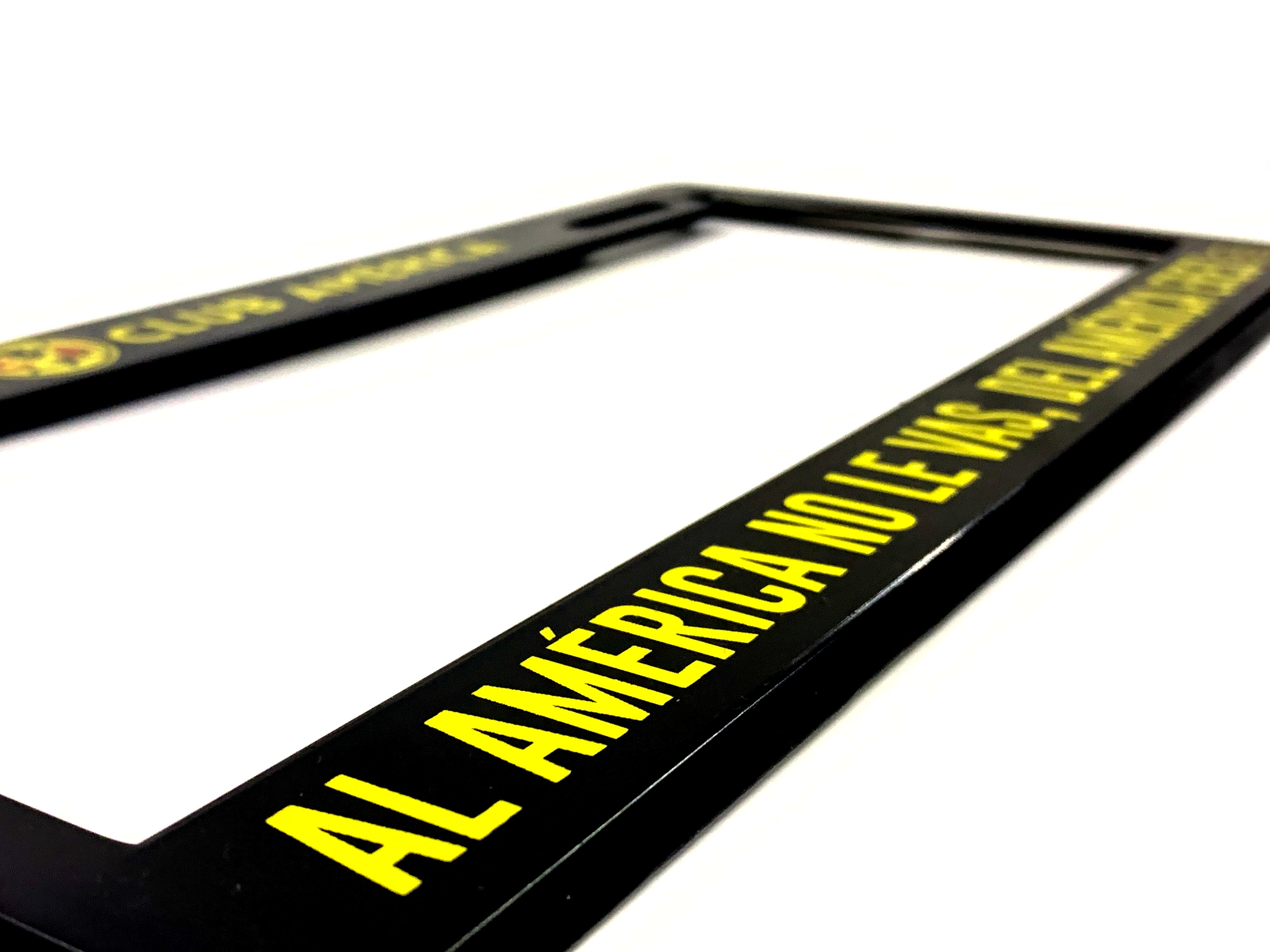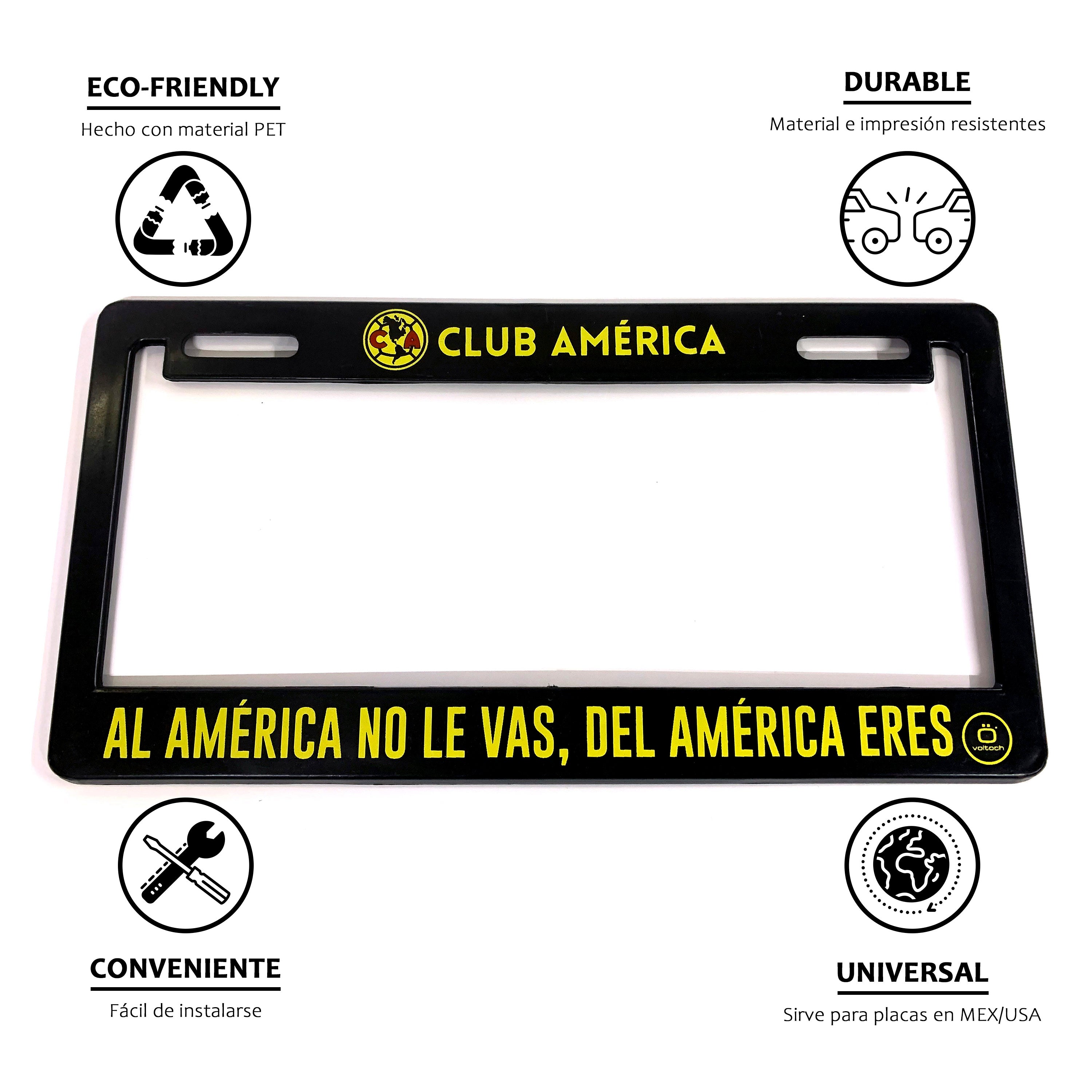 Portaplacas América, paquete con 2 piezas, con leyenda "Al América no le vas, del América eres", producto oficial, marca Voltoch.