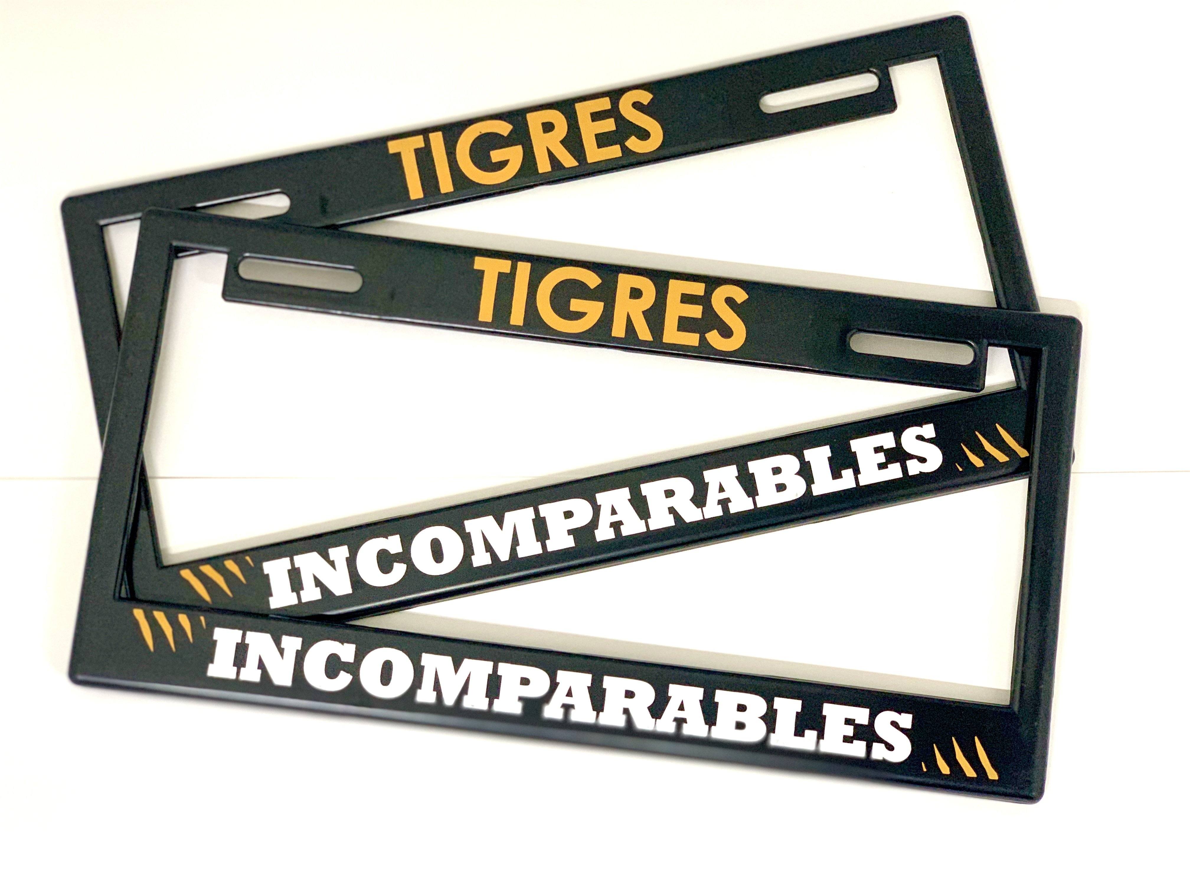 Porta Placas Tigres UANL, paquete con 2 piezas, con leyenda TIGRES y Antifaz felino, producto oficial, marca...